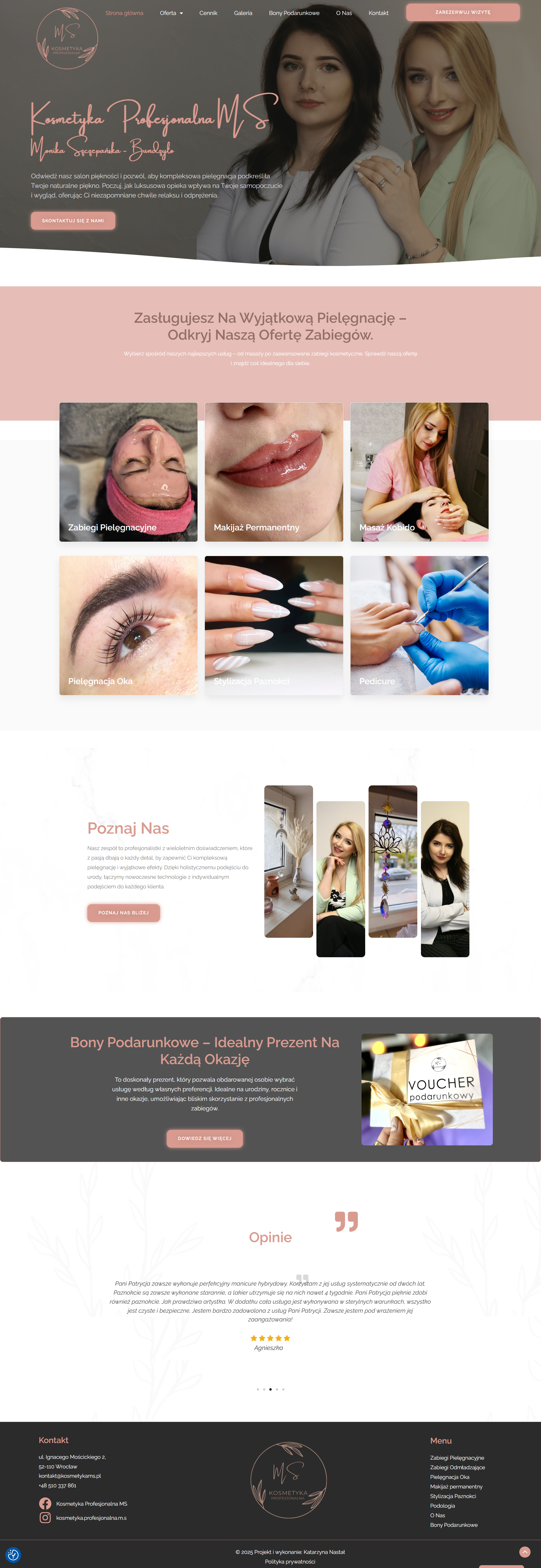 Strona internetowa dla gabinetu kosmetycznego.