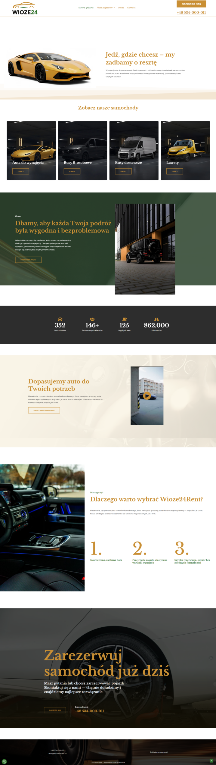 Strona internetowa dla wypożyczalni samochodów.
